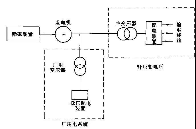发电厂的电气系统,包括发电机、励磁装置、厂用电系统和升压变电所等,如图4所示。